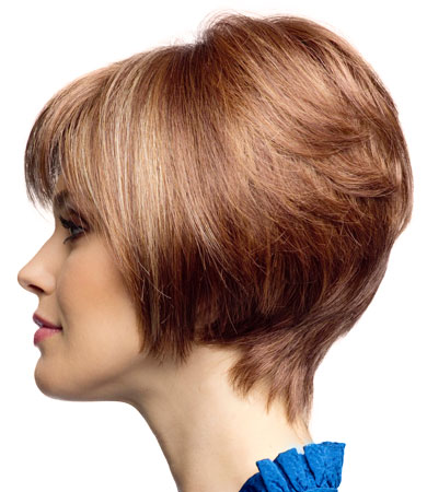 Emily Wig by Amore is a face-framing bob with tousled curl in the crown. The inbuilt, added volume at the crown and the longer layers towards the face give it a bob look.
