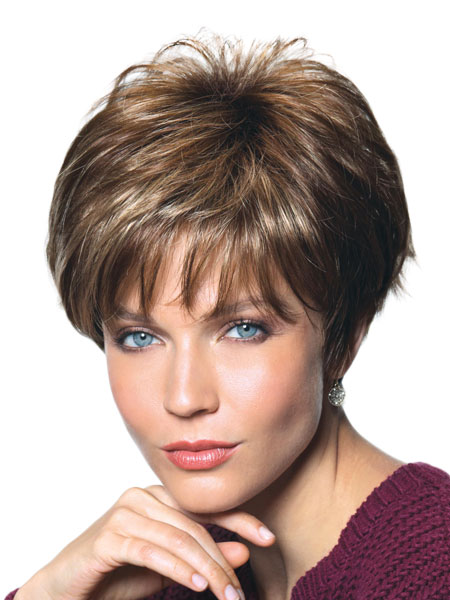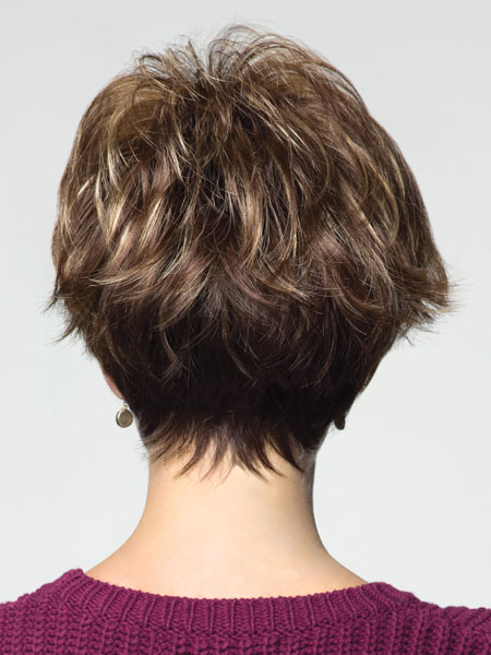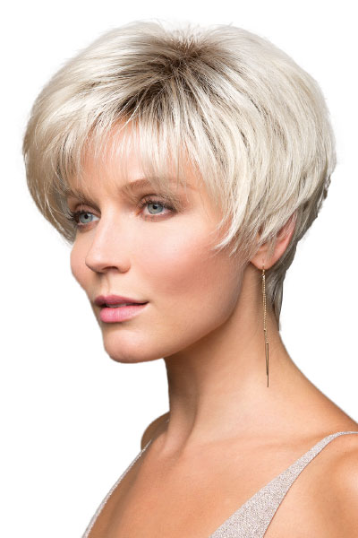 This wig is wispy, textured and edgy. The fringe has layers to give it a lift at the root and the side pieces can be worn forward or behind your ears. The textured layers along the sides and back give volume and movement.