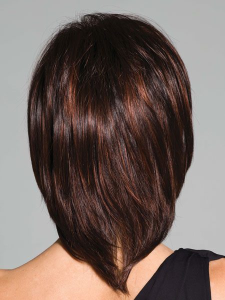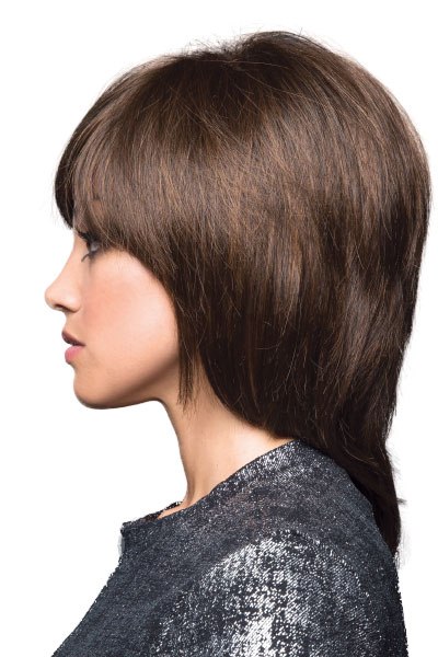 A shoulder length wig, Jordin typifies the sleek and smooth sophisticated styles  by Rene of Paris. The side layers present a subtle, smooth silhouette with ample natural movement. The wispy fringe is razor cut and can be swept to one side or styled by your wig consultant.