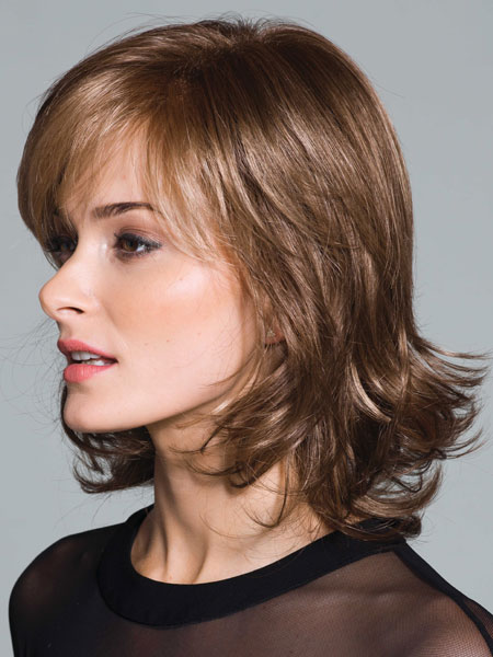 This is a perfectly pre-styled wig ready to wear wig but you can alter the style to wear it behind the ear. The fringe is swept to the side but you can have it trimmed and styled to take it straight across. It has built-in volume and nice fullness. The face framing layers make it appealing for every face shape.