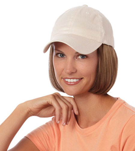 With hair to the chin, Short Cap-Beige is part of a range of beautifully blended hair, permanently  attached to a 100% cotton baseball cap, creating a ready-to-wear hair fashion alternative with absolutely no styling needed.