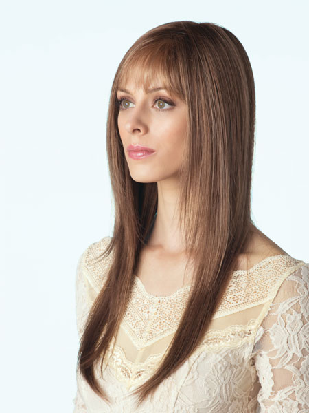 The Amore series from Rene of Paris offers the highest quality monofilament styles and gives the appearance of natural hair growth where the hair parts.