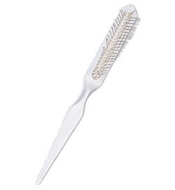 Stainless steel bristles with a tail-comb, ideal for long hair and separating the fibres. The Teasing Brush comes in three attractive colours. These brushes are designed for synthetic wig fibres and will not pull or stretch the fibre.